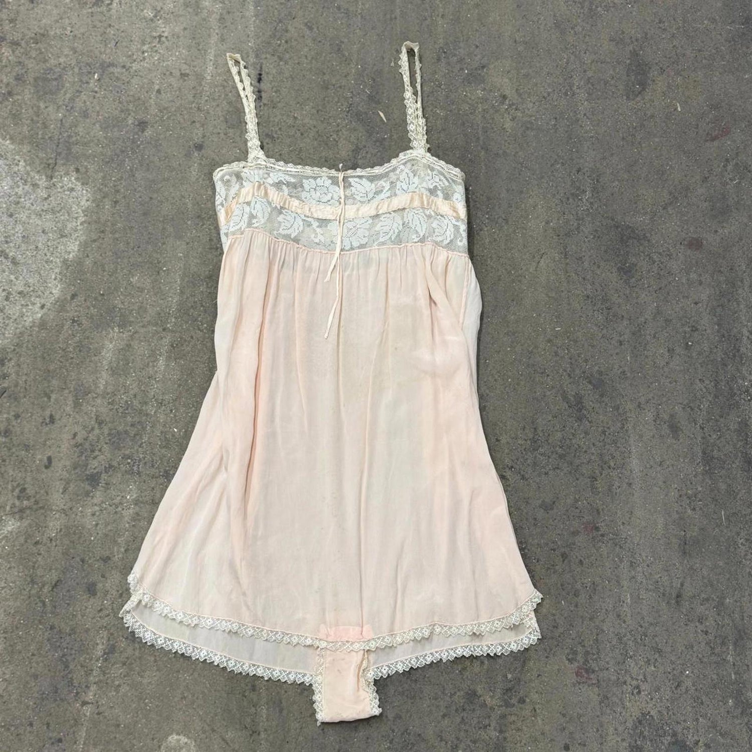 Antique 20s Pink Silk & Filet Lace Step-In Lingerie Teddy