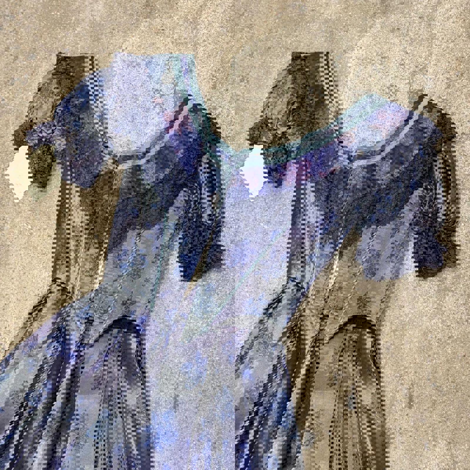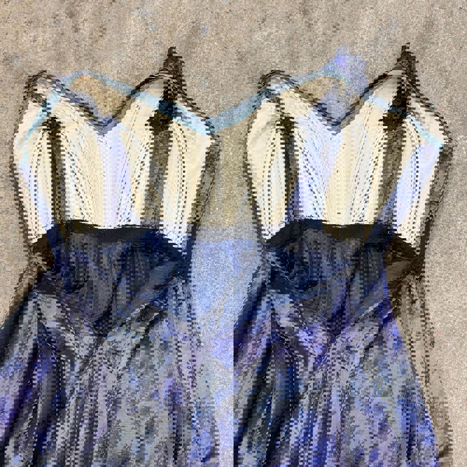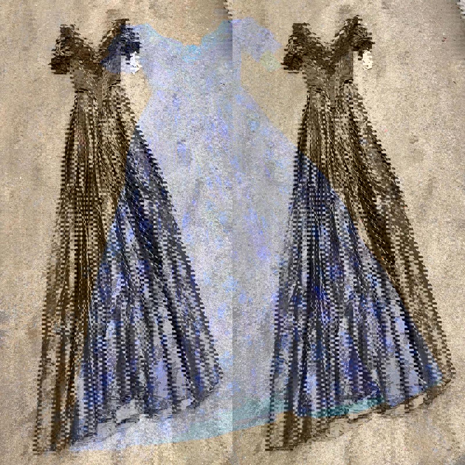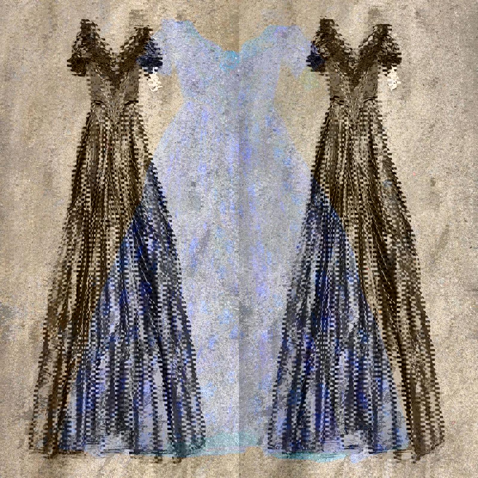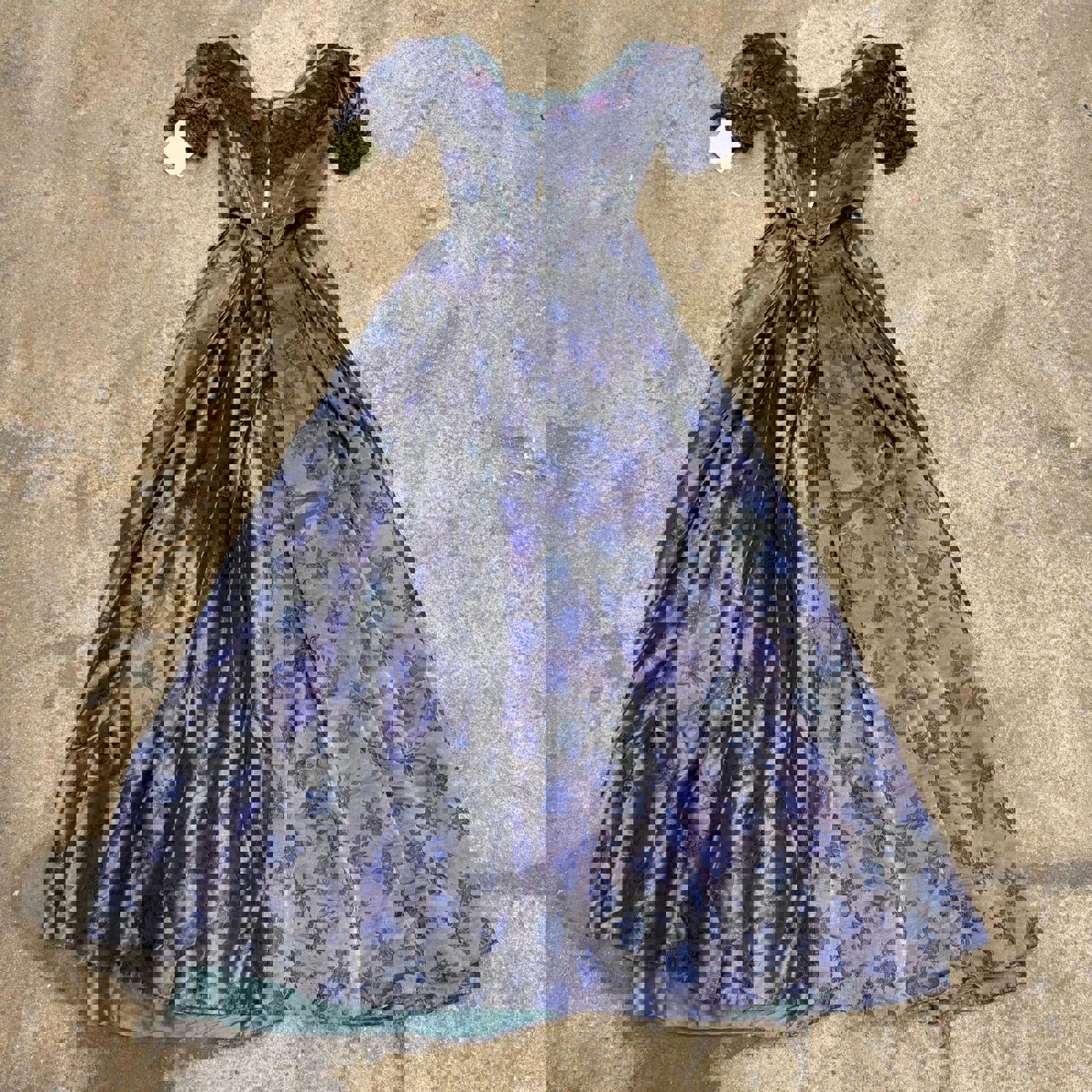 50s Vintage Iridescent Blue Floral Silk Victorian 1800s Style Gown Film Costume