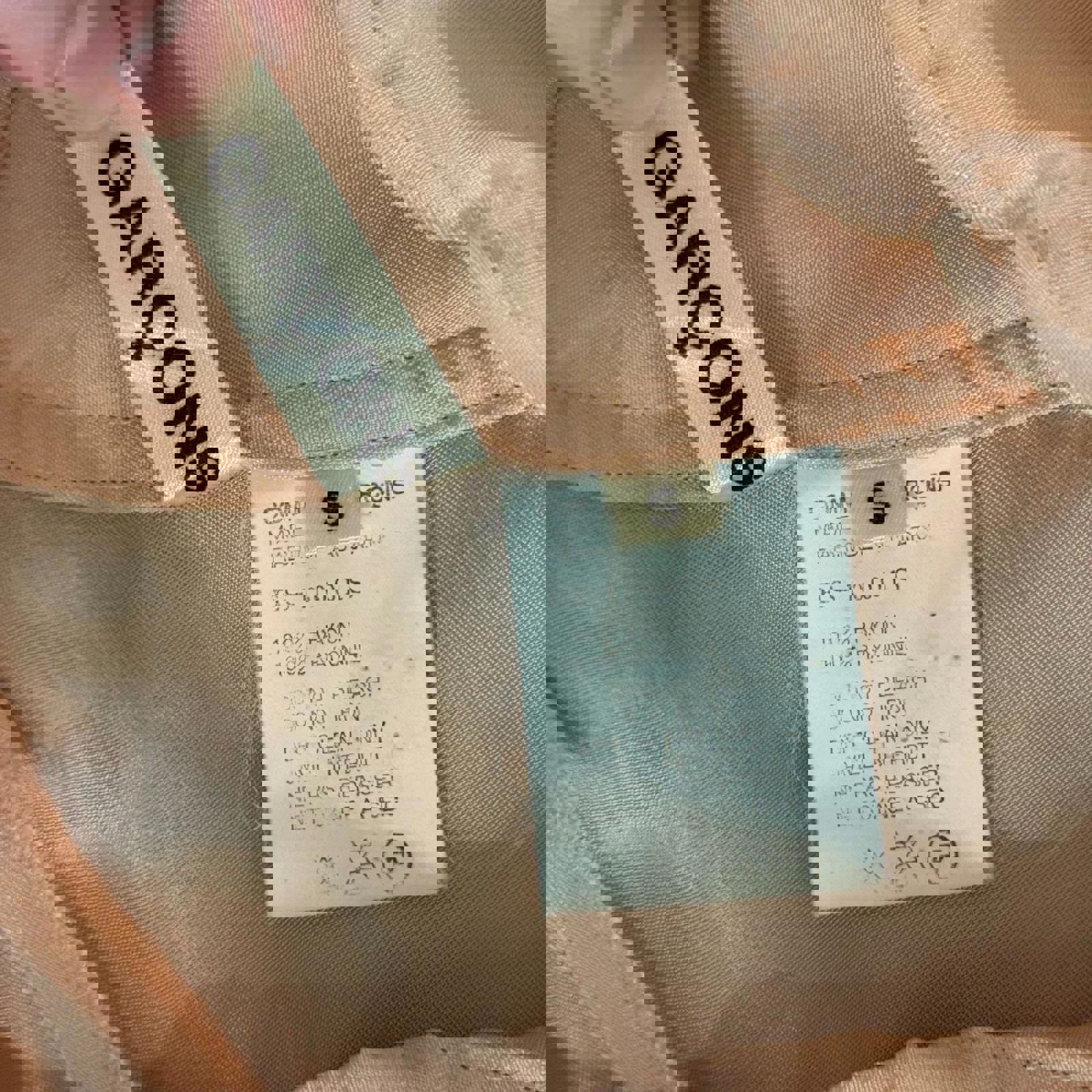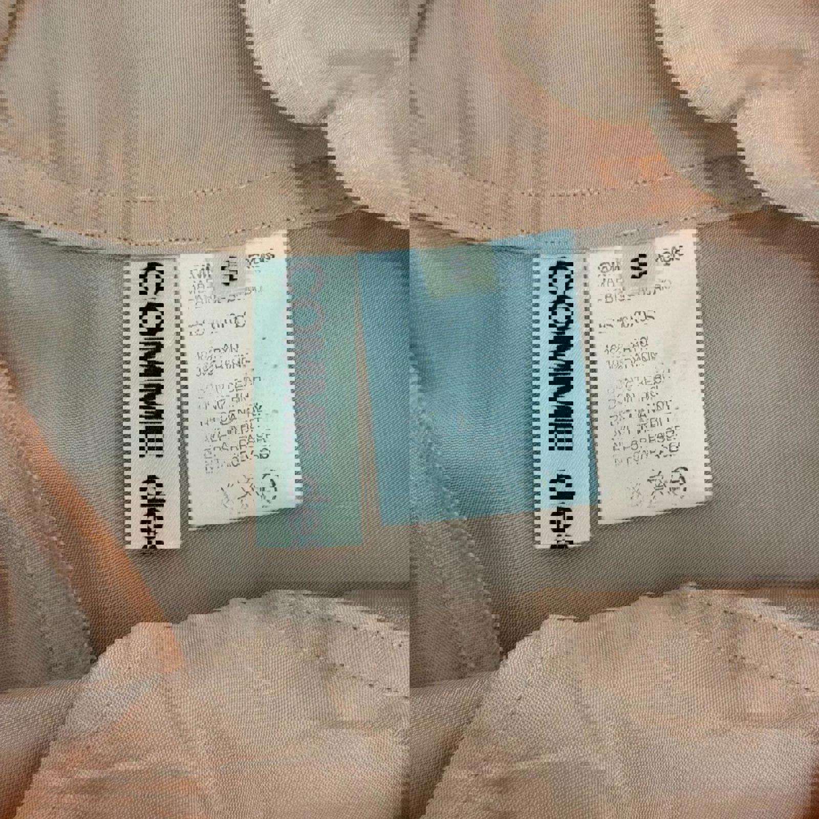 An incredible archival piece by the legendary Japanese label Comme des Garçons. This 1990s midi skirt is crafted from a luxurious, lightweight peach-toned rayon satin that offers a subtle liquid-like sheen. It features a signature avant-garde construction with a high-waisted yoke, delicate white button closures at the hip, and a striking asymmetric hemline. The bias-cut fabric drapes beautifully, embodying the brand’s mastery of deconstructed elegance and minimalist sophistication.