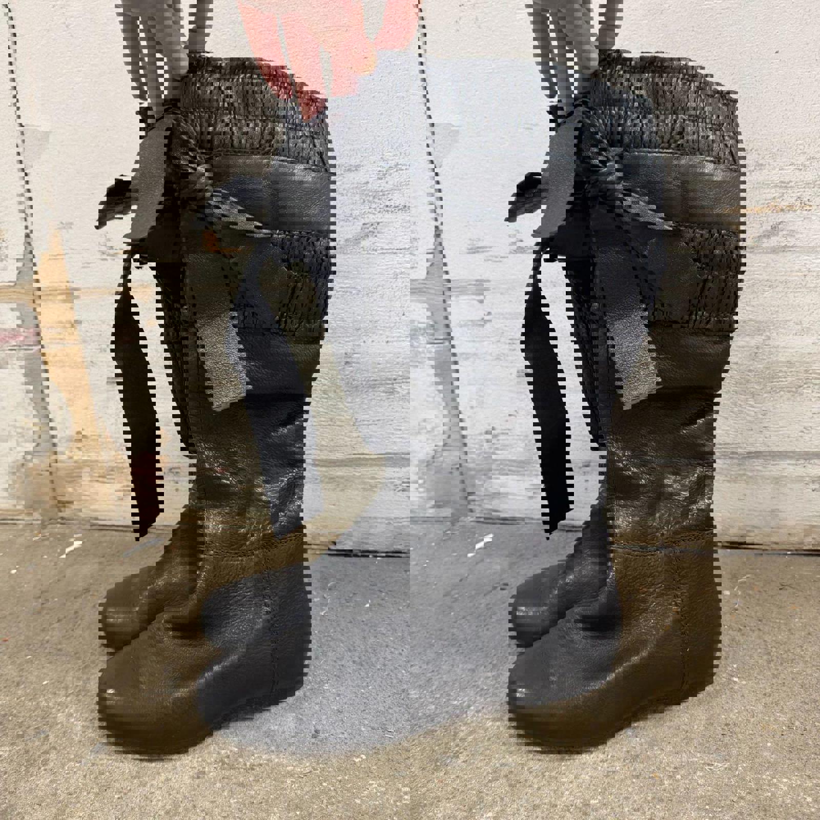 Tags: miu miu vintage boots archival miu miu black leather boots 90s designer footwear y2k luxury boots vero cuoio italy designer tall boots flat boots coquette aesthetic balletcore subversive basic size 36.5 leather bow boots
