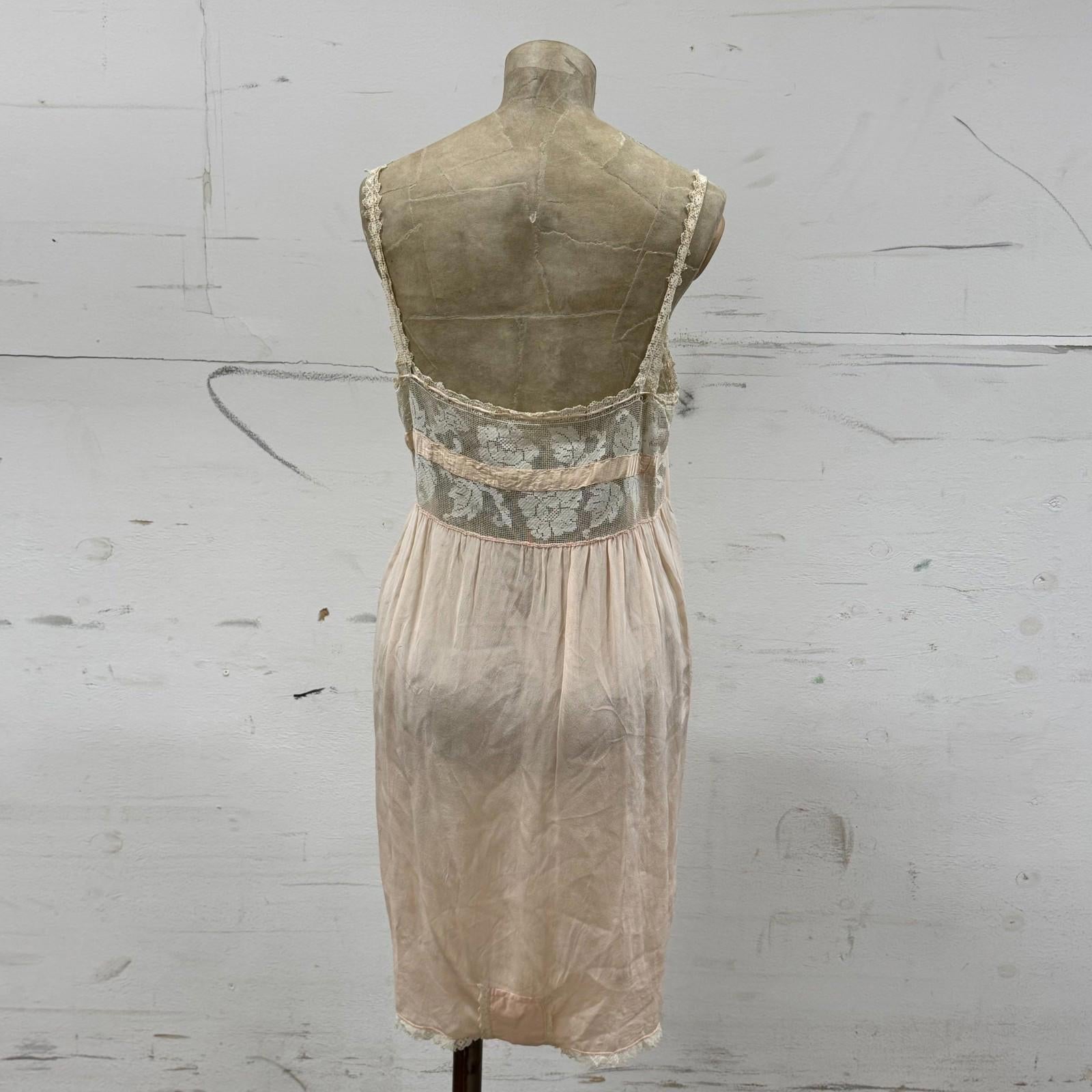 Antique 20s Pink Silk & Filet Lace Step-In Tap Pants Lingerie Teddy Slip Vintage