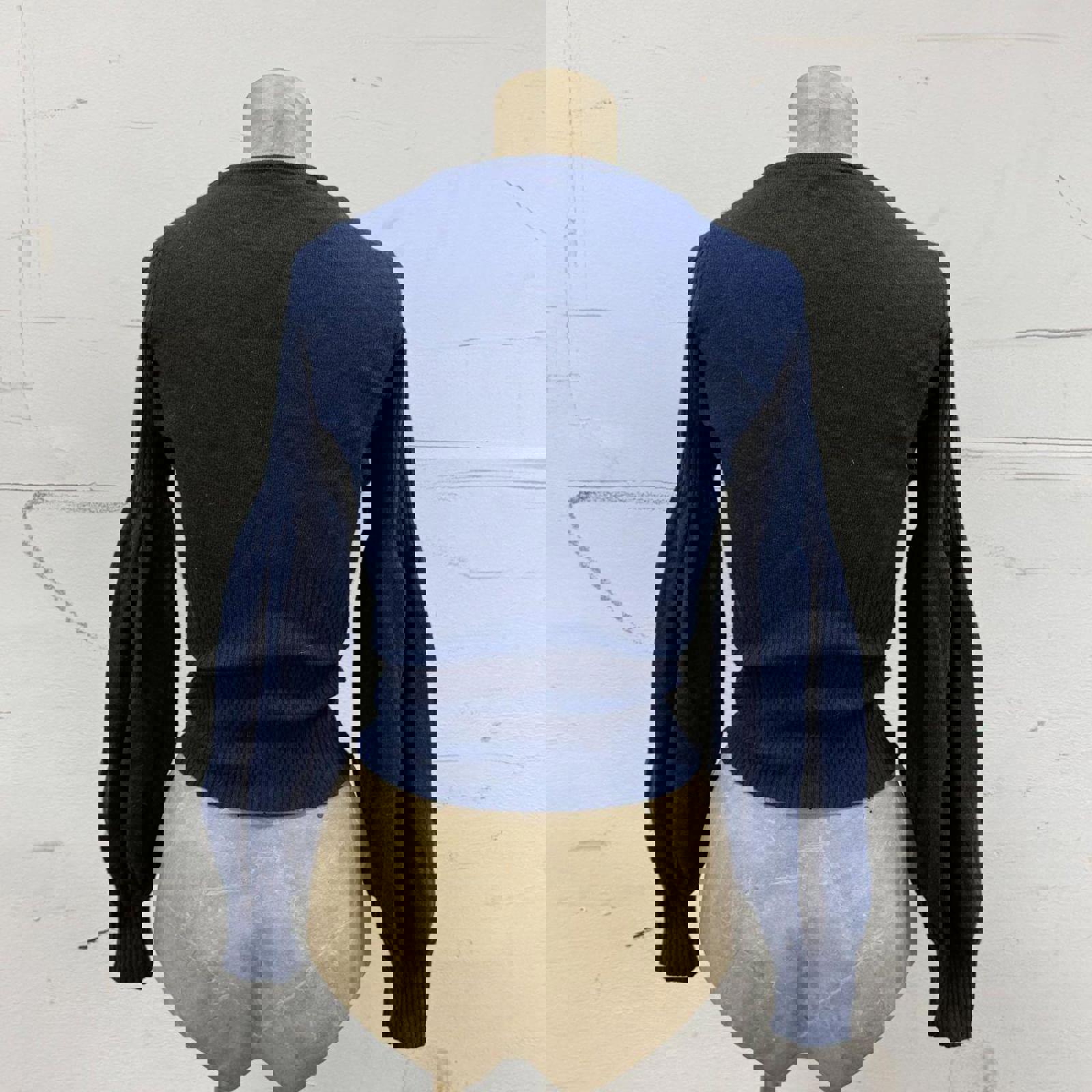 Beautiful navy knit cardigan with dramatic balloon sleeves and fitted ribbed waist. V-neck button front with signature gold heart charm detail. That quintessential Y2K Blumarine silhouette, romantic and flattering.
