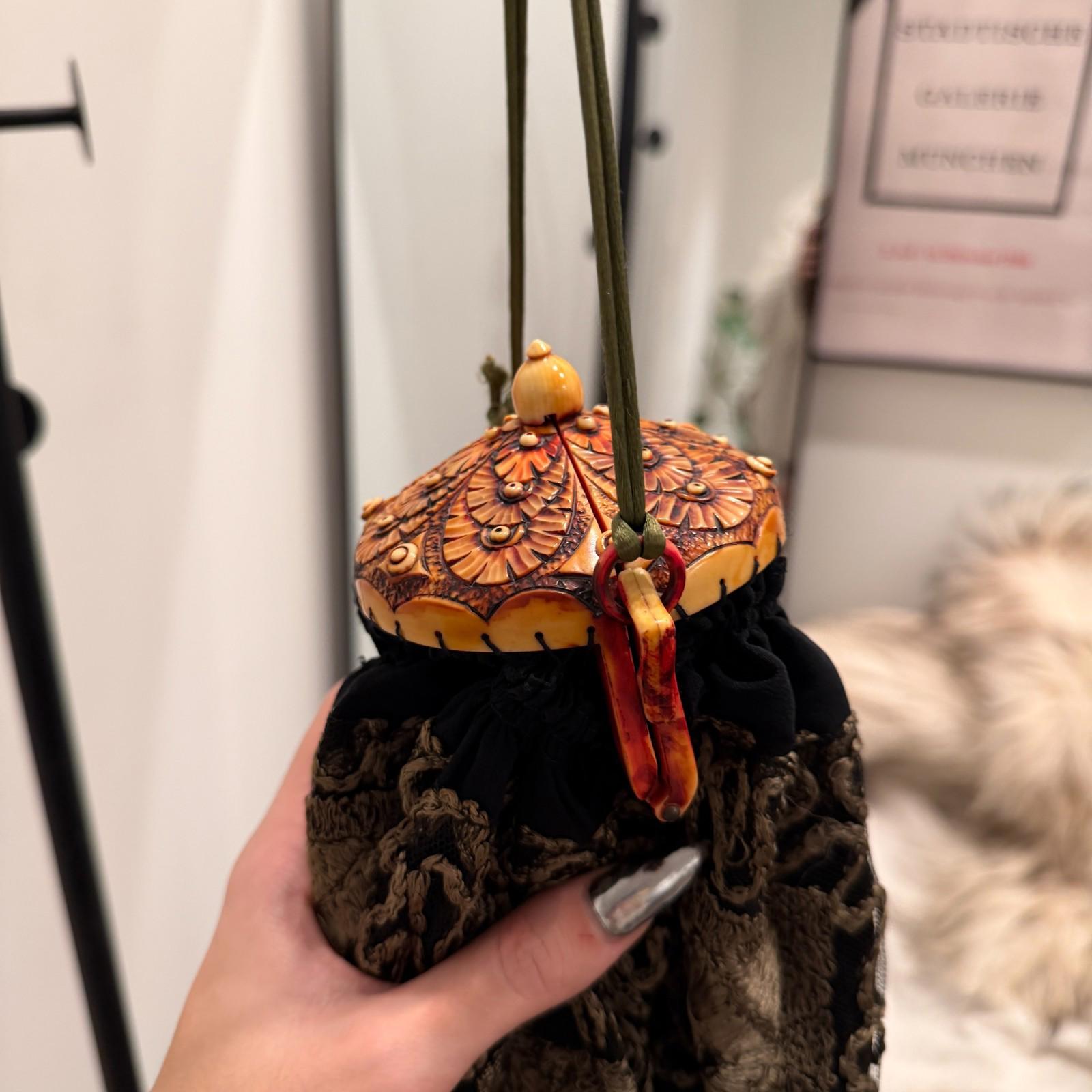 Pristine 1920s Antique Flapper Purse Carved Celluloid Frame