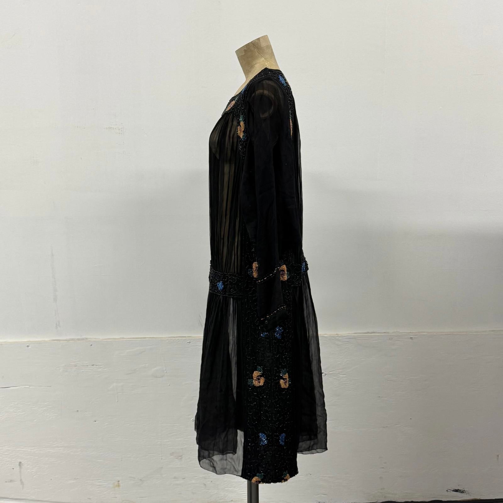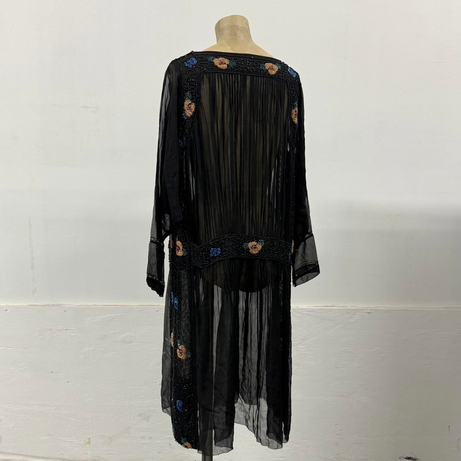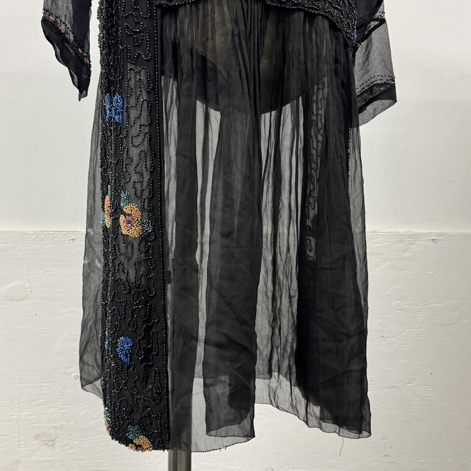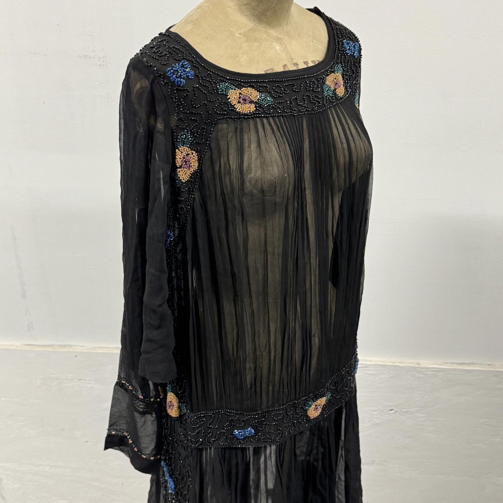 Pristine Vintage Antique 20s Beaded Black Silk Flapper Dress