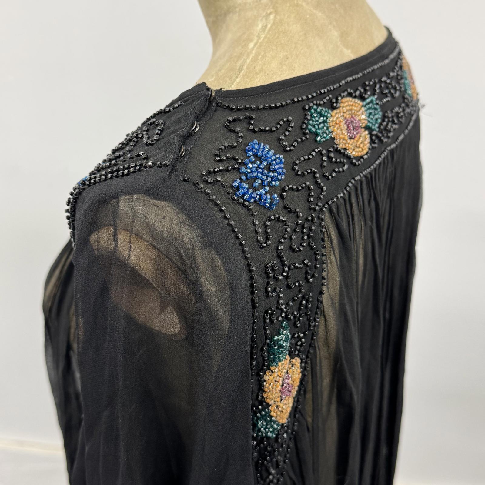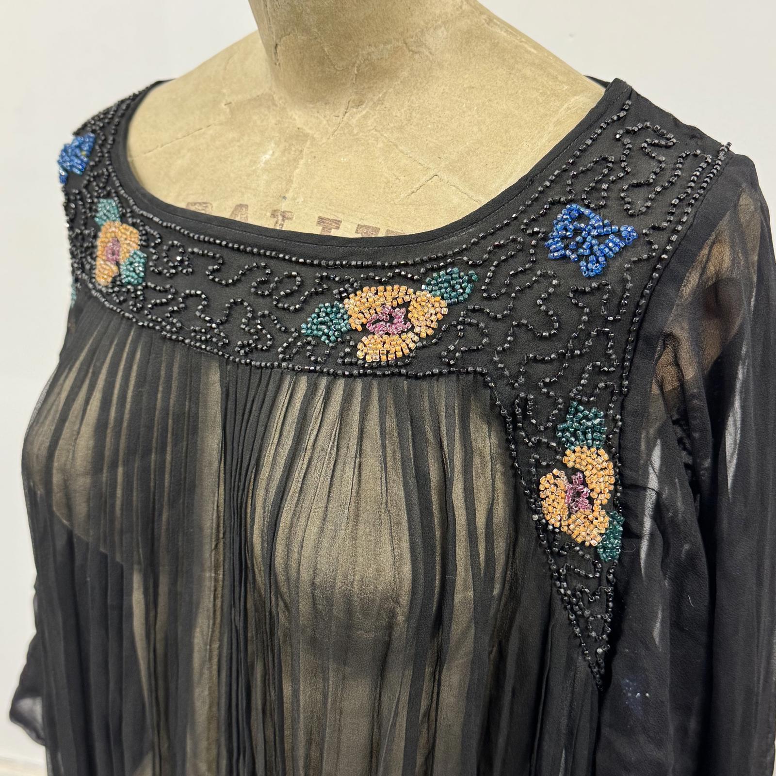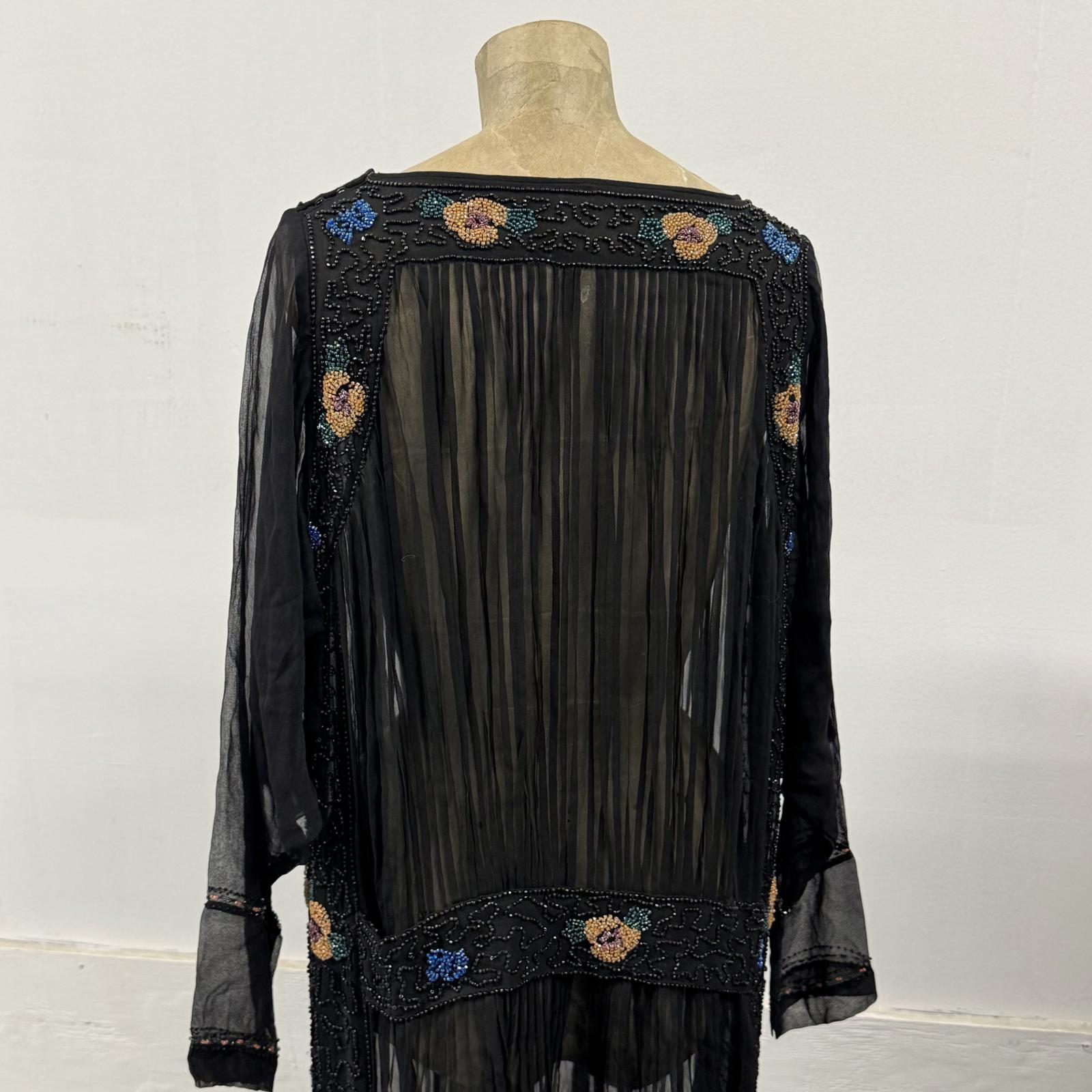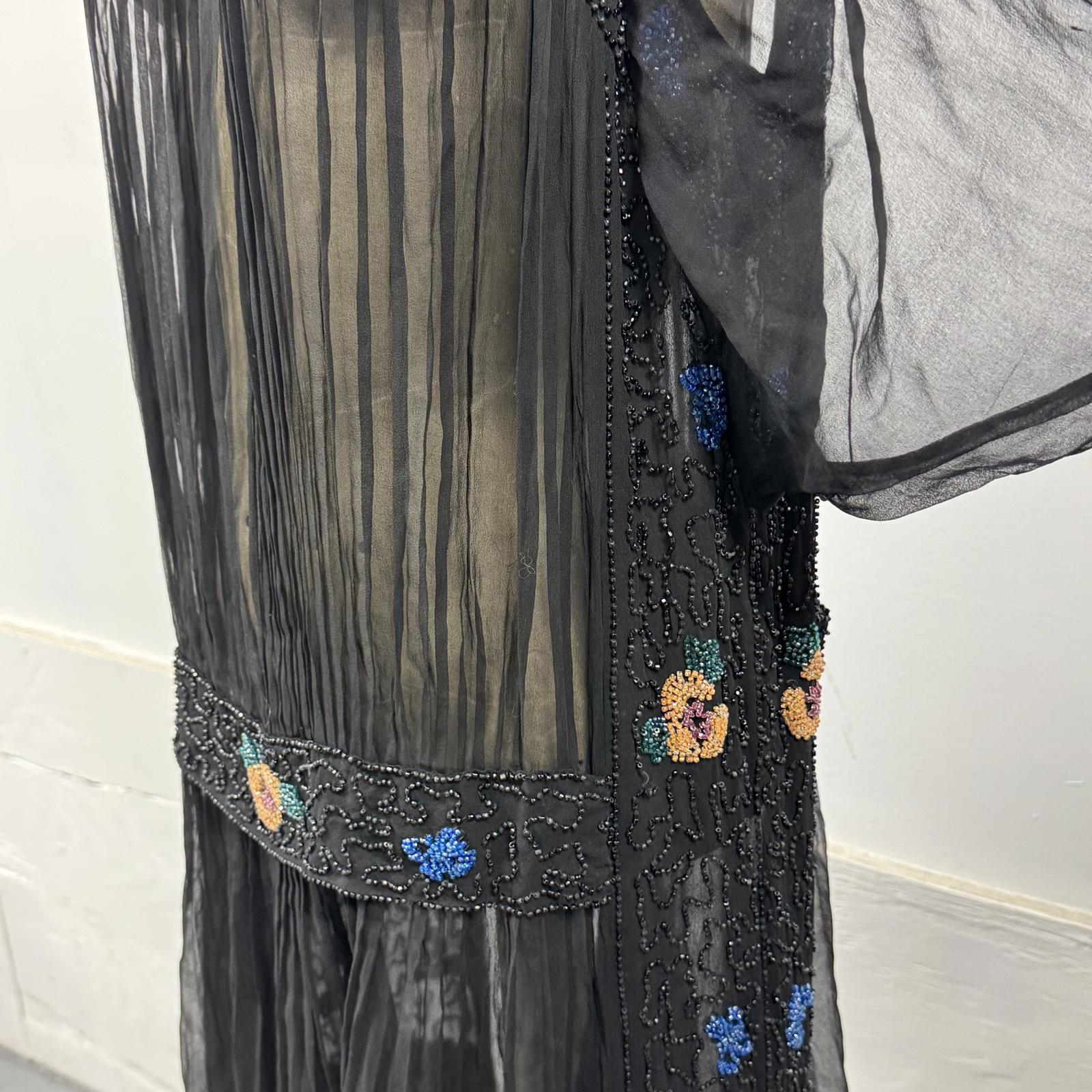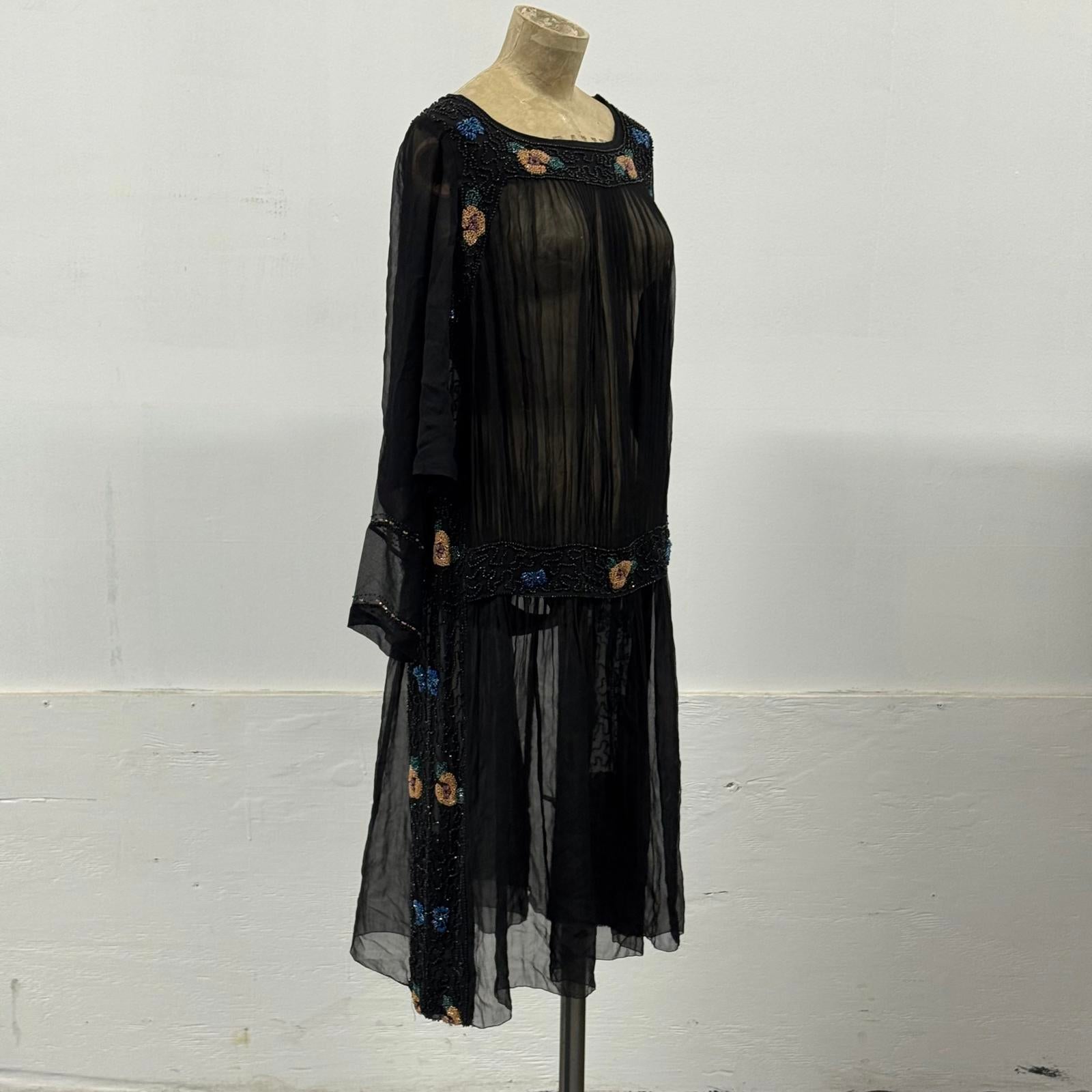 Pristine Vintage Antique 20s Beaded Black Silk Flapper Dress