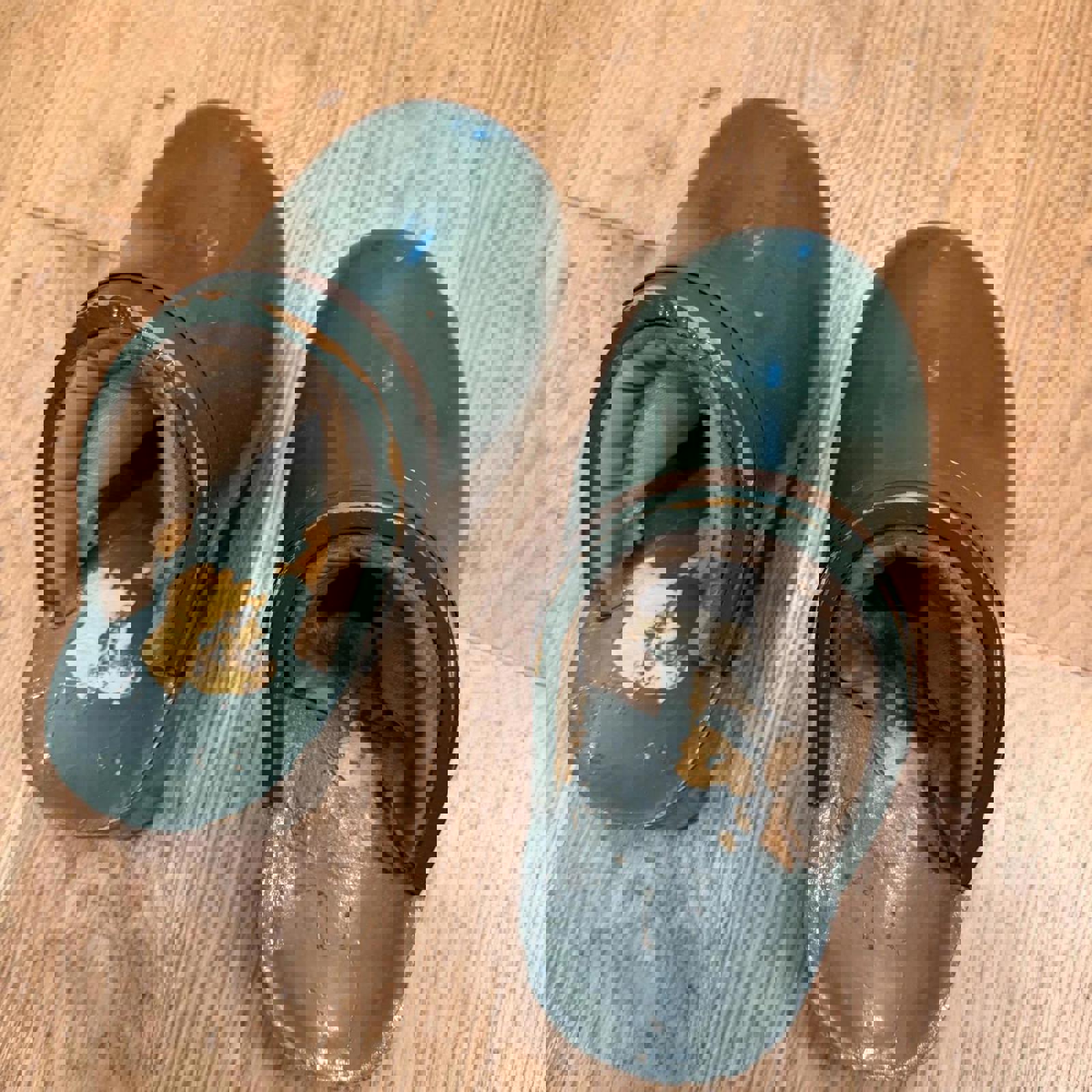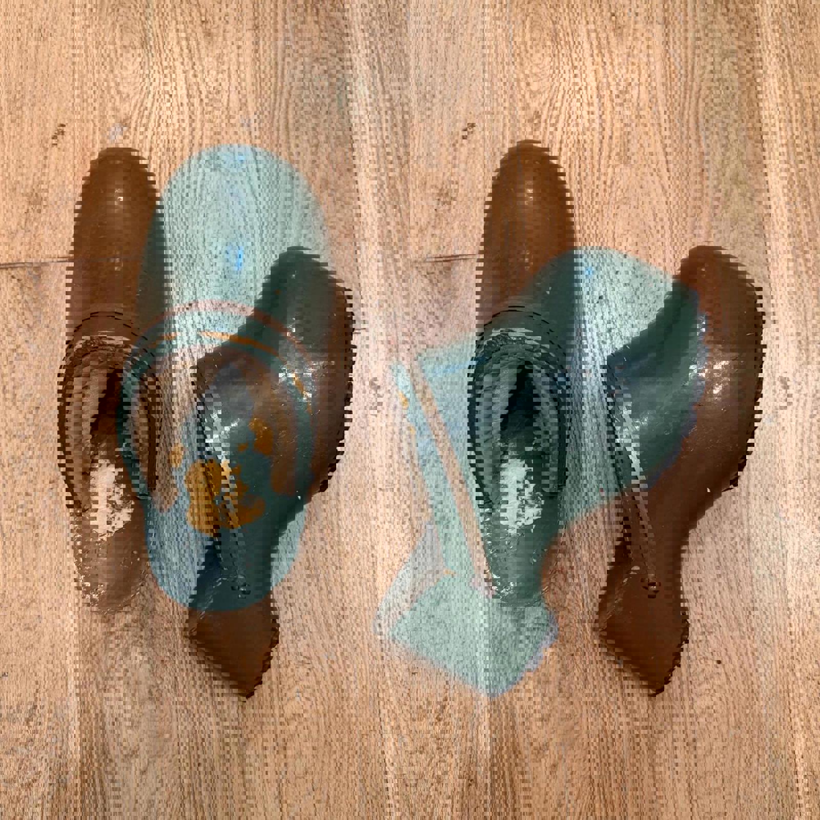A 💥💥💥RARE💥💥💥 pair of early 1970s green Famolare Amsterdam clogs. I have never seen this colorway before! These 1972-1973 limited edition Famolare Amsterdam shoes are bright glossy green fiberglass sculpted clogs with a brass band across the top vamp. Soft foam insert linings helps them stay on perfectly. Famolare shoes are in museums around the world like the Museum of Modern Art for their unique, innovative designs! 1970s Famolare Amsterdam clogs are rare, with the green ones VERY VERY RARE, sometimes yellow or red Amsterdam clogs pop up for resale but these ones are highly coveted and almost impossible to find.These treasures were made & sold in a limited edition 50 years ago and are fashion Grail. Google them & see for yourself! 🙂 They’re iconic vintage treasures are a smart investment too. As long as you take good care of them, these gems will only increase in value over time.
