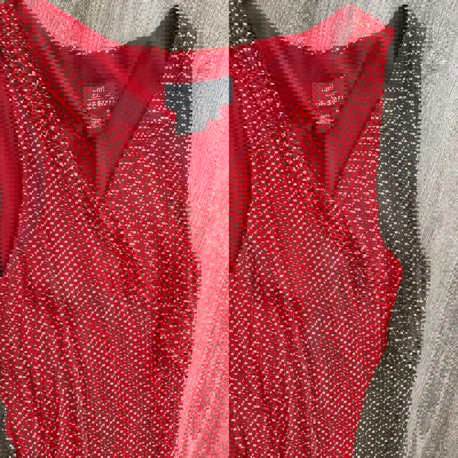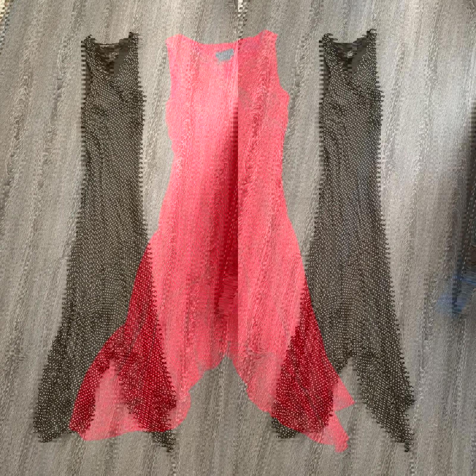 beautiful 100% silk y2k/90s vintage asymmetric midi dress in red and cream polka dots