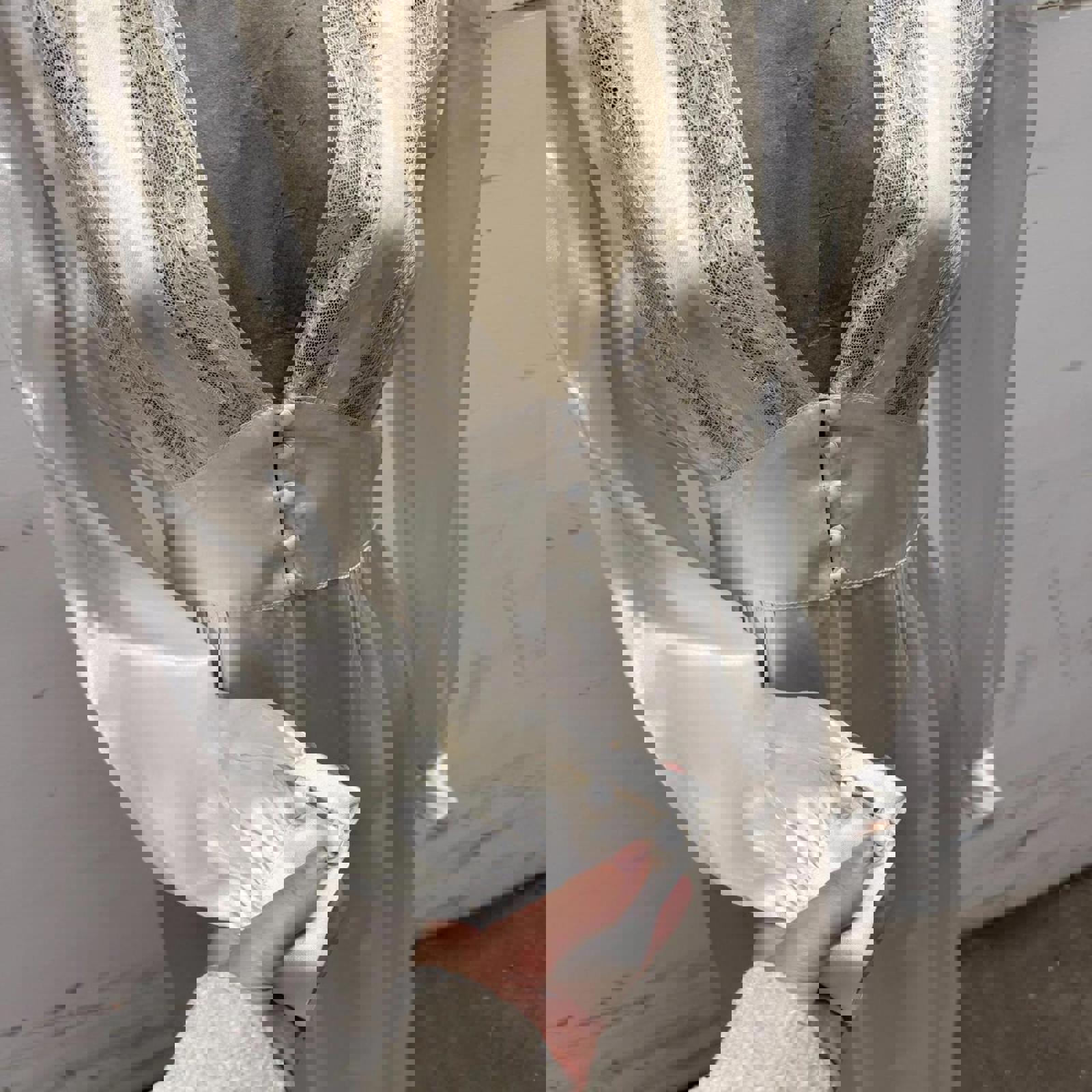 This gown was fully restored: the degraded original shank buttons were replaced with period-appropriate new ones, and the entire dress has been carefully cleaned, steamed, and stabilized.