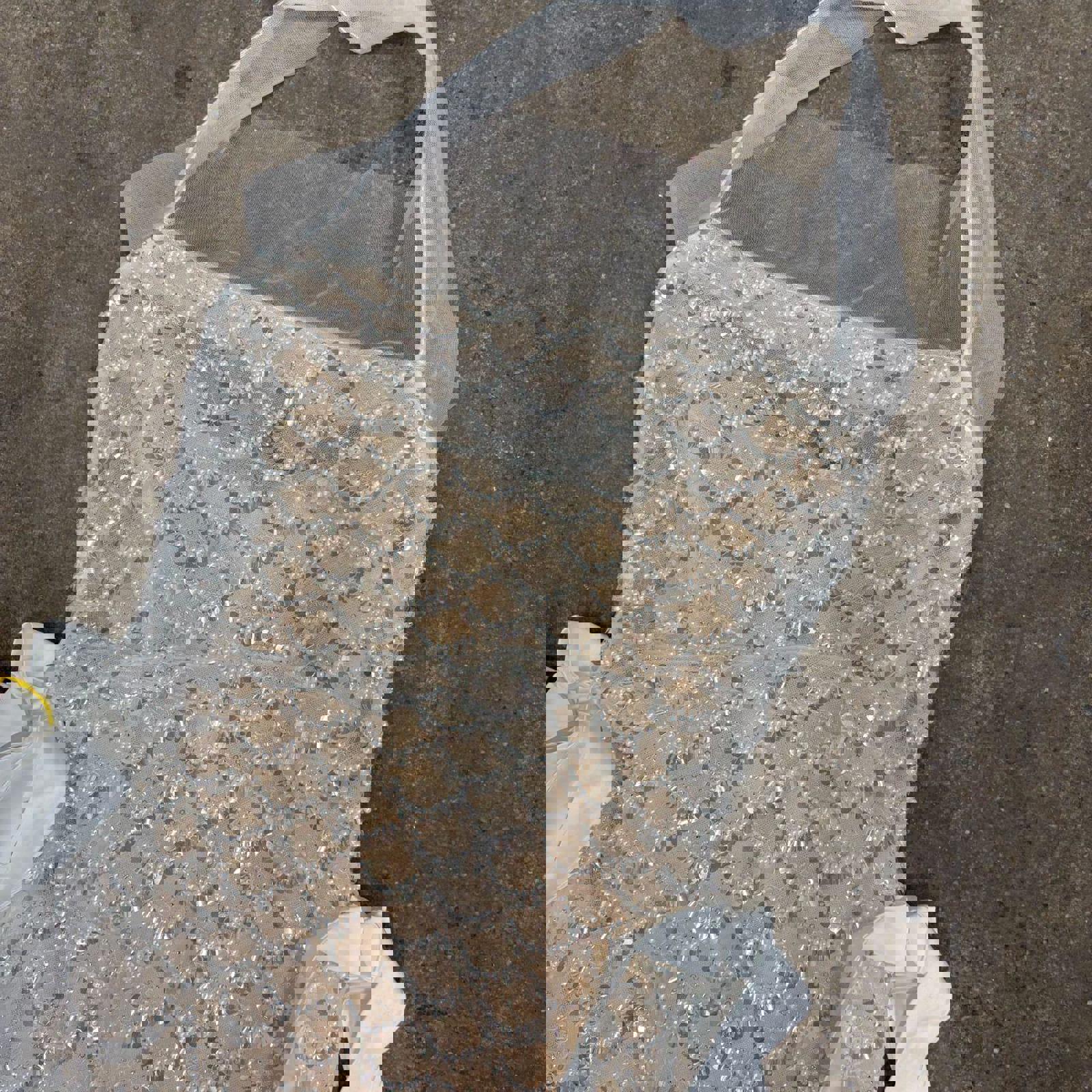 Sheer Silver Sequin Beaded Mermaid Halter Dress