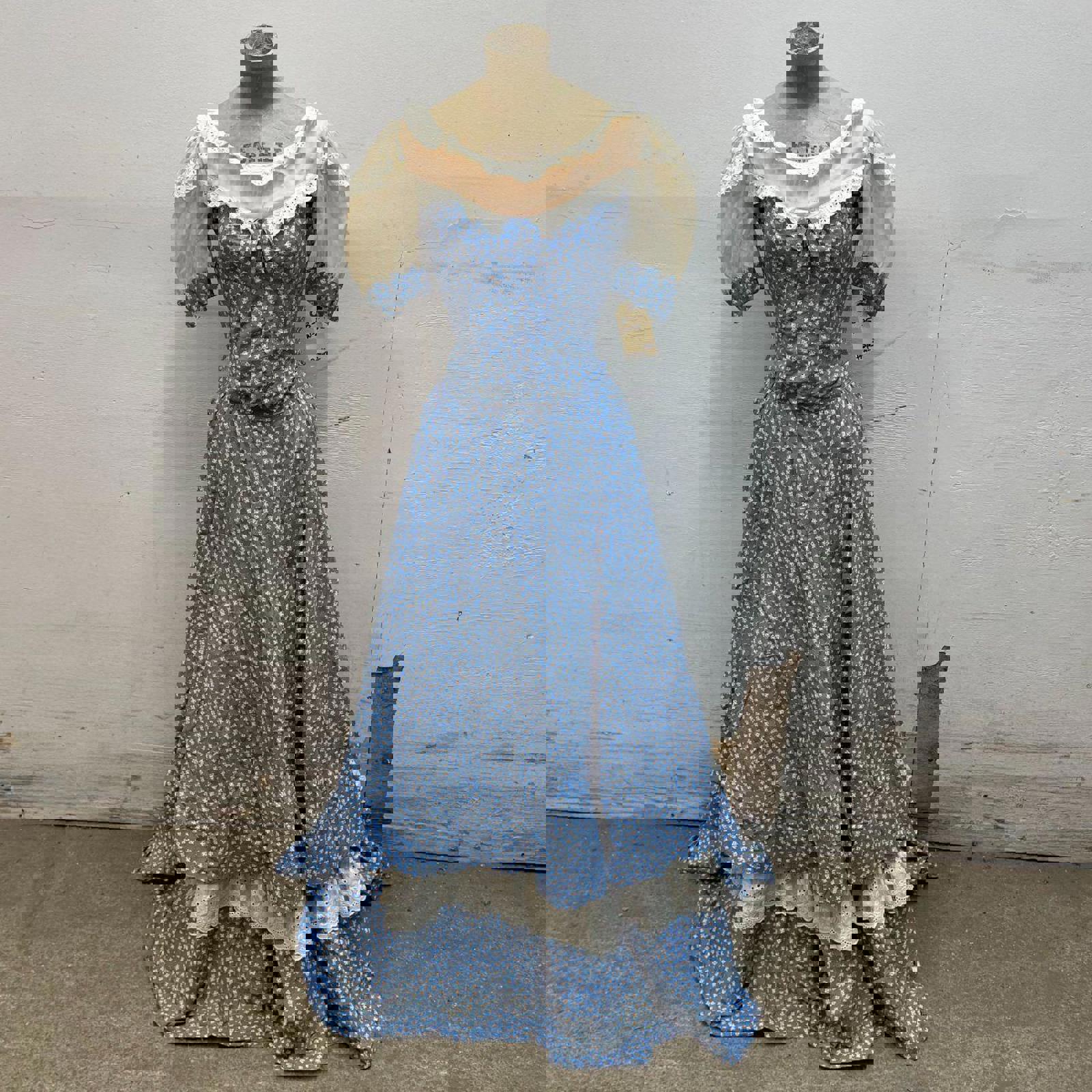 Vintage 1950s Studio-Made Blue Calico Tiered Western Prairie Dress Movie Costume