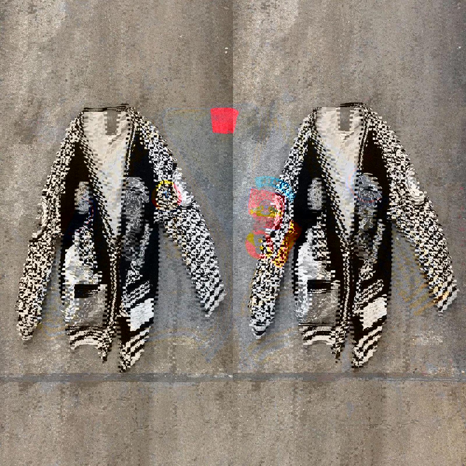 Vintage 1980s James Dean Novelty Cardigan Sweater Patchwork