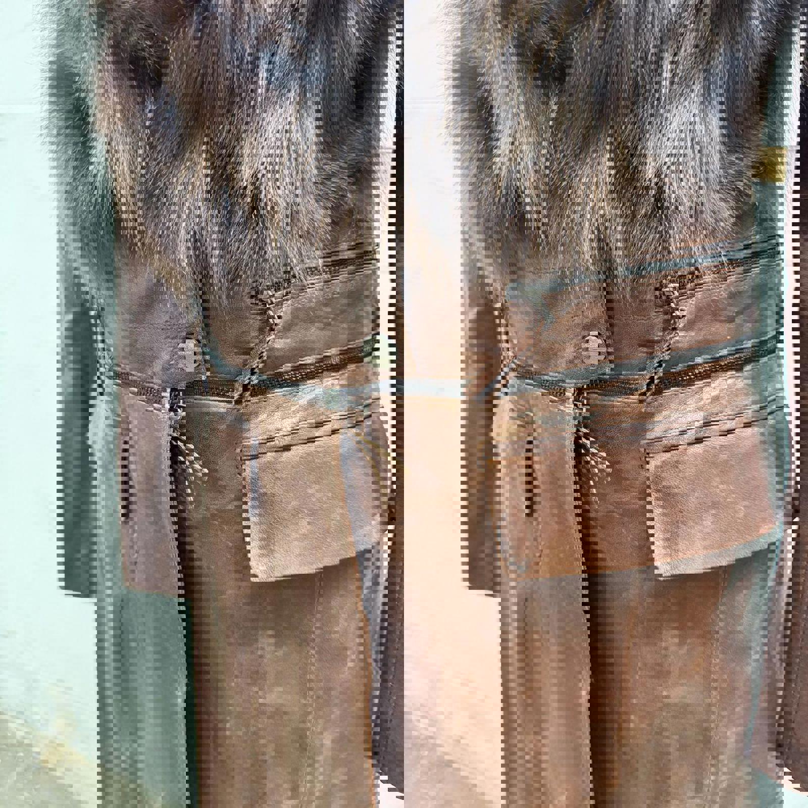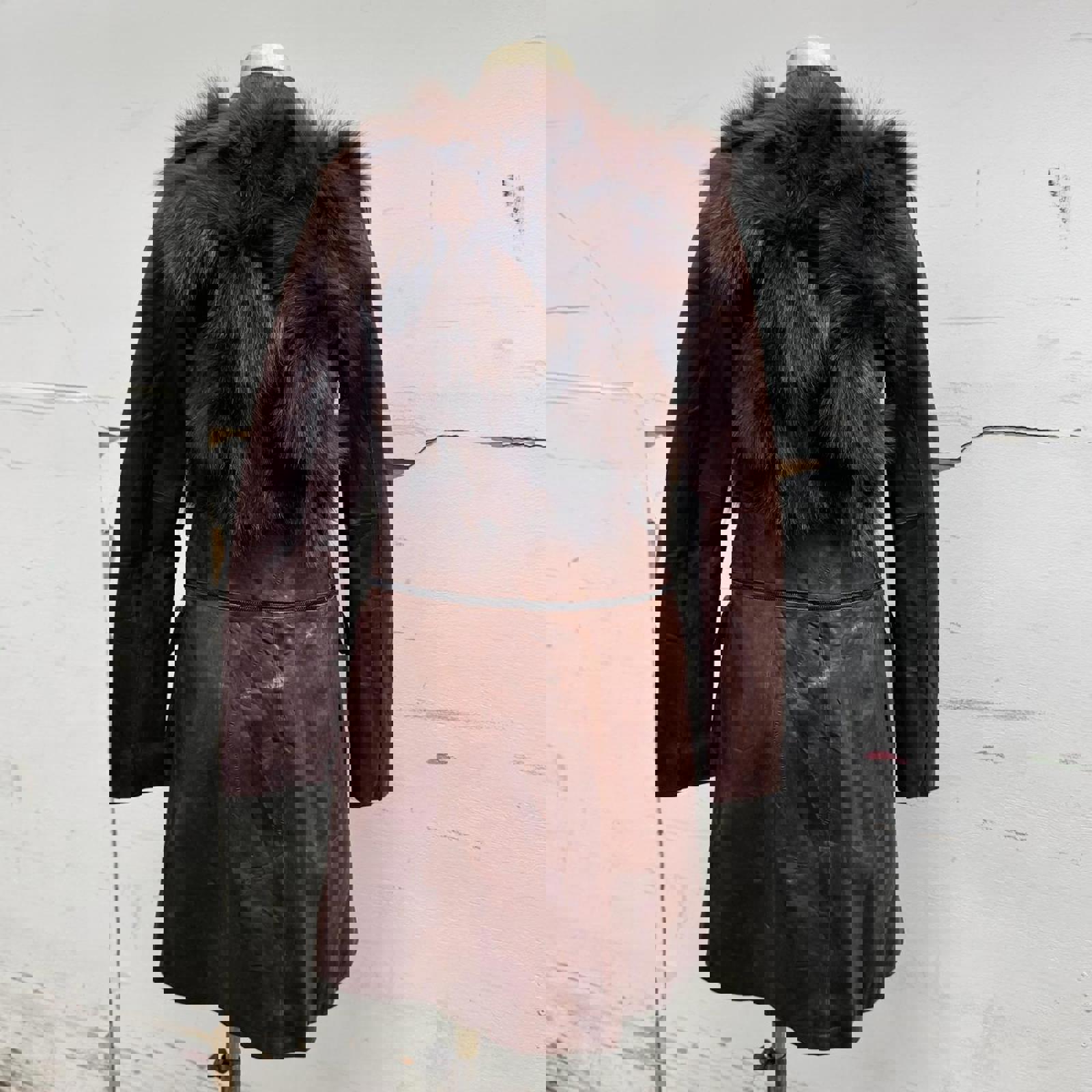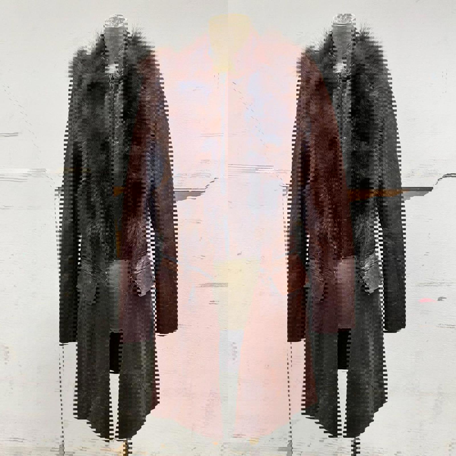 Vintage Brown Leather & Fox Fur Detachable Multi-way Statement Coat