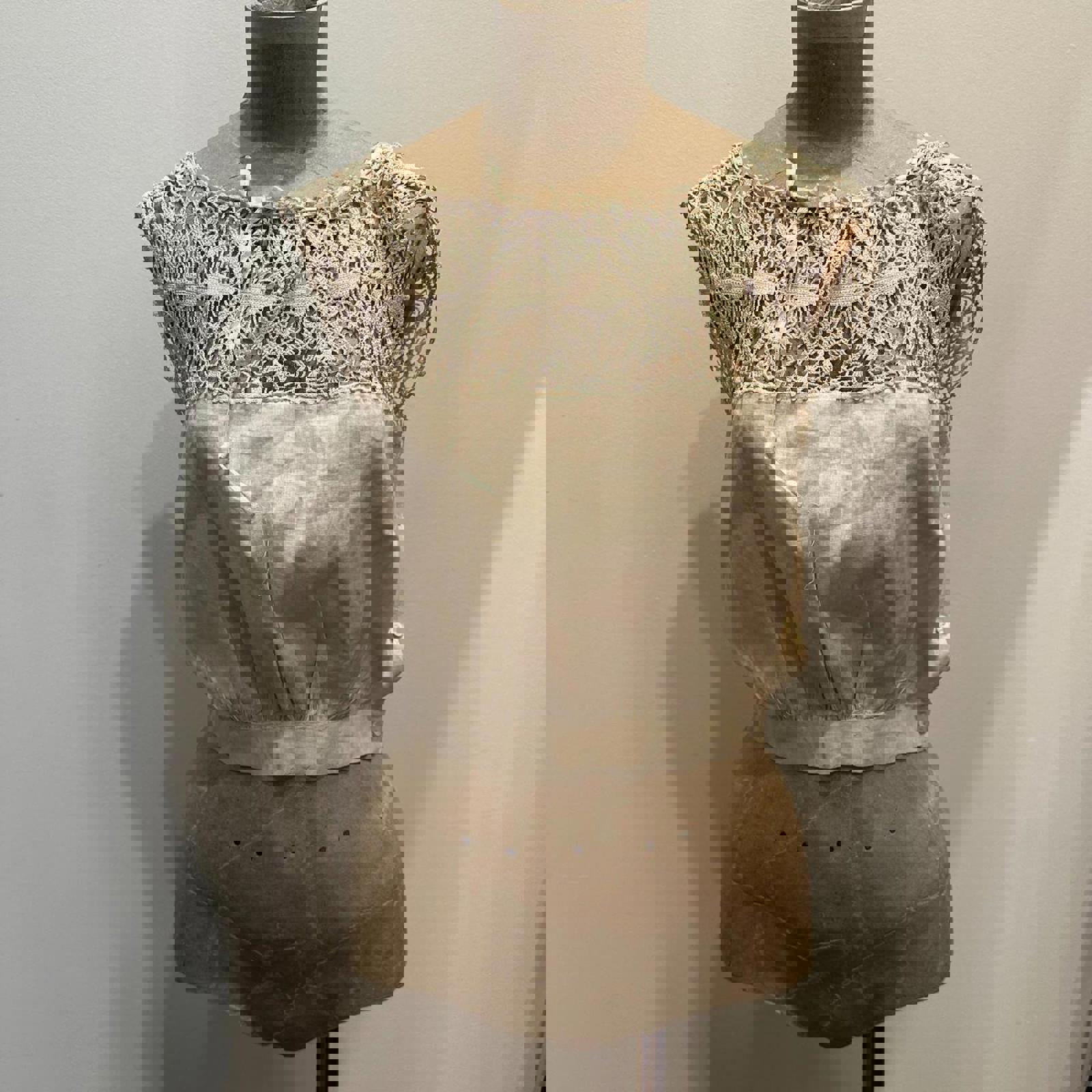 Antique Edwardian 1910s Corset Cover Tank Top Vest Camisole Cotton Lace