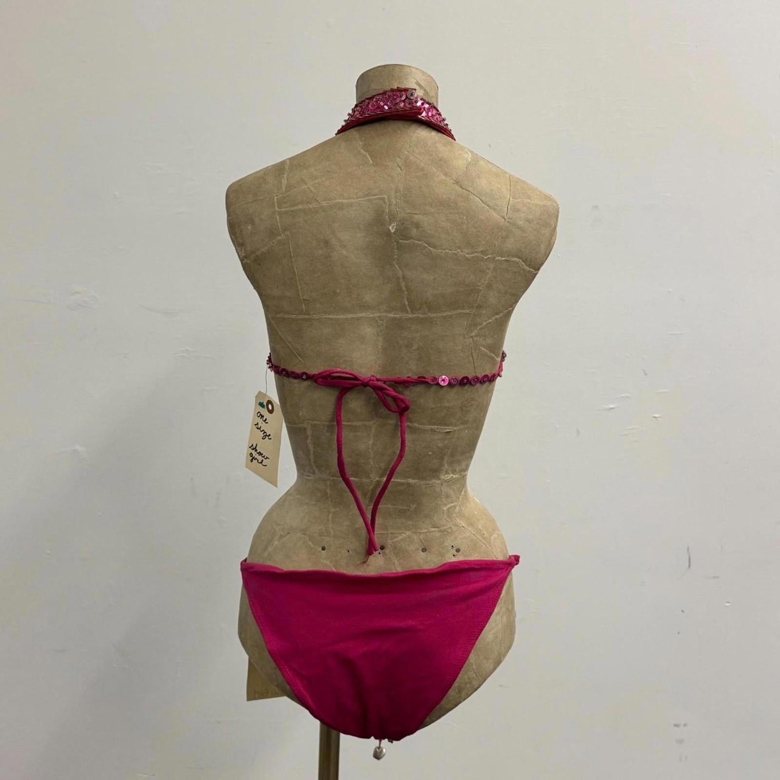 Vintage Hot Pink Sequin Burlesque Showgirl Costume Set