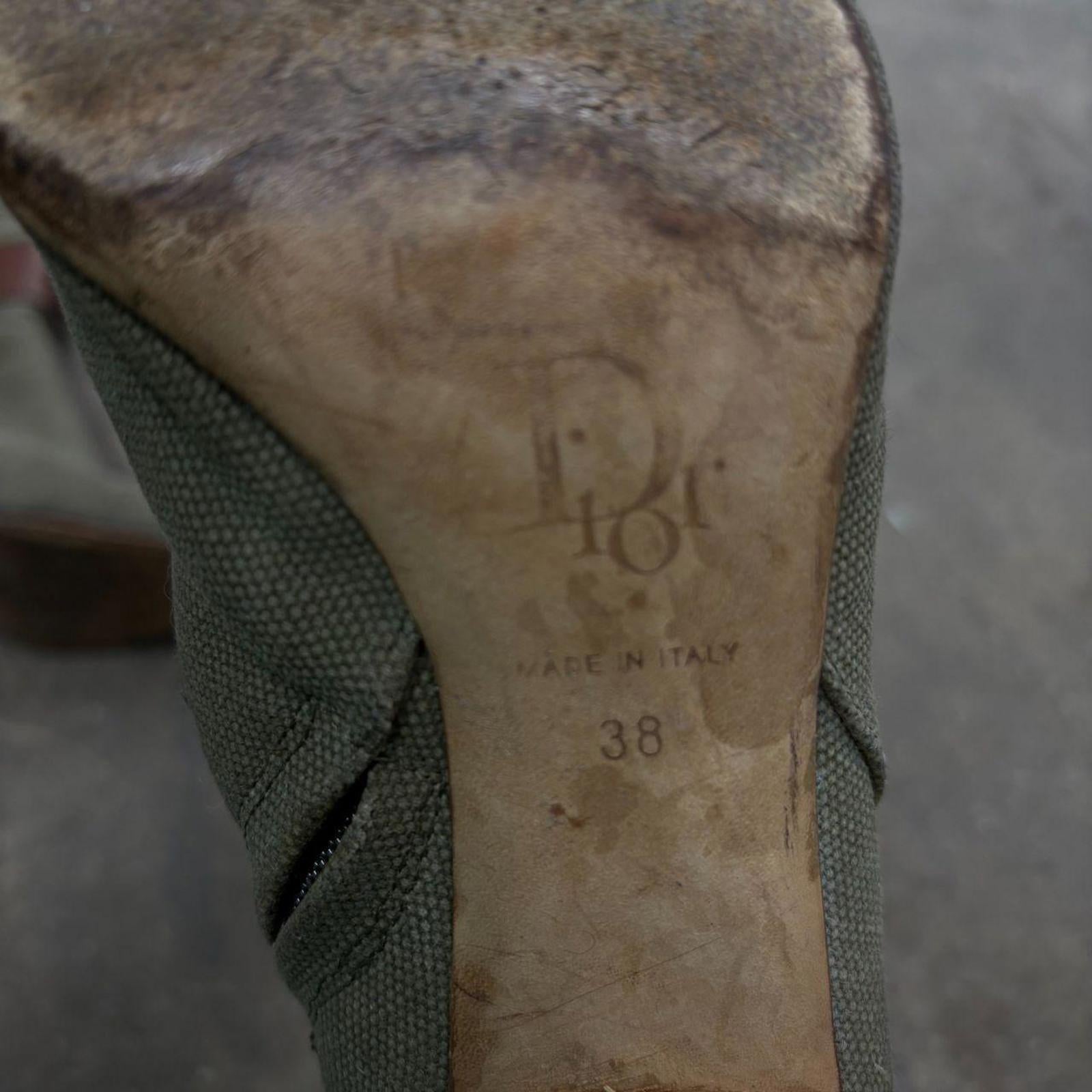 Tags: vintage dior boots galliano dior booties authentic christian dior y2k dior fashion olive canvas boots kitten heel booties 2000s dior archival footwear military chic aesthetic size 38 boots designer vintage shoes logomania dior hardware