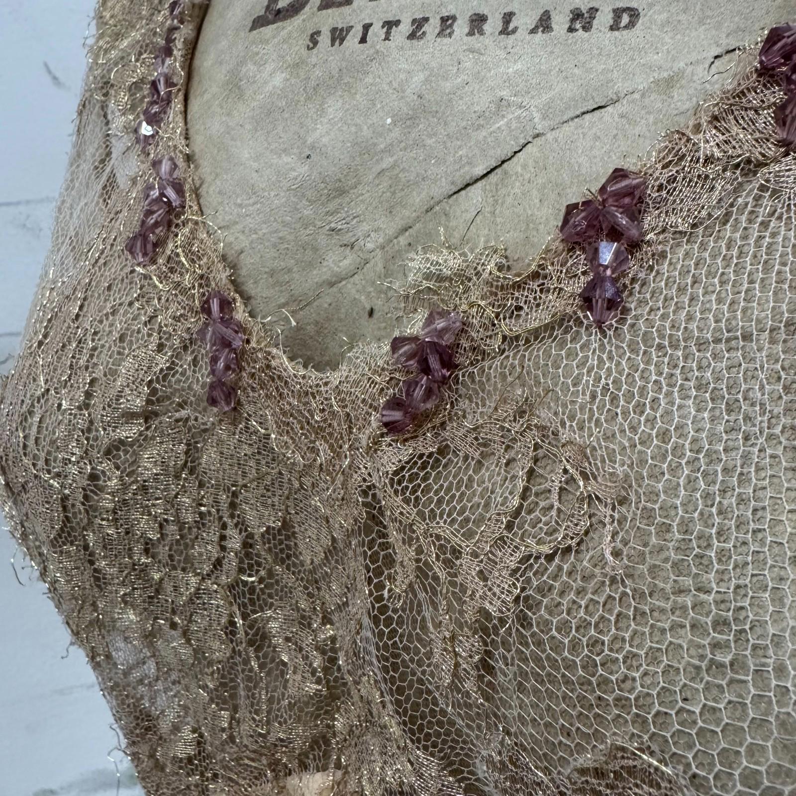 Vintage Y2K European Beaded Silk Lace Ombré Gown Dress Detachable Sleeves