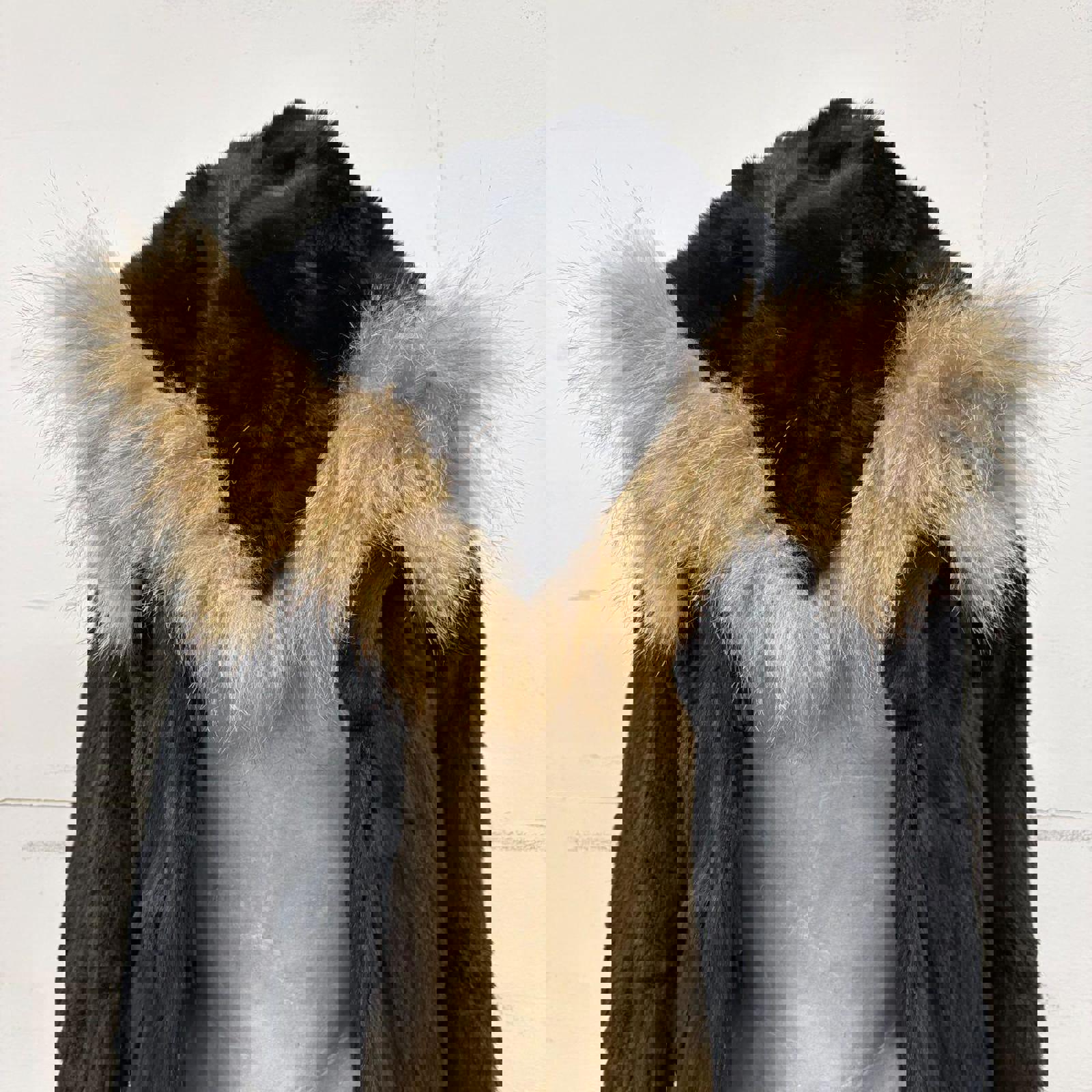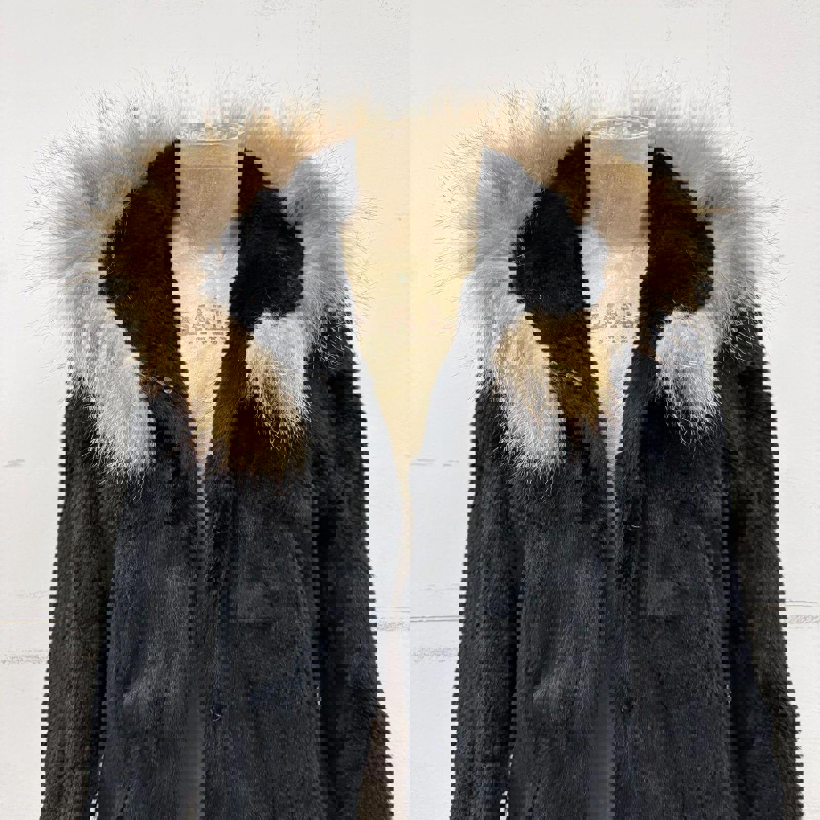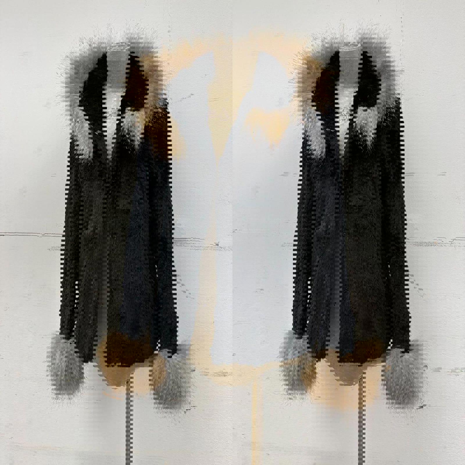 Vintage Y2K Jet Black Rabbit & Fox Fur Hooded Jacket