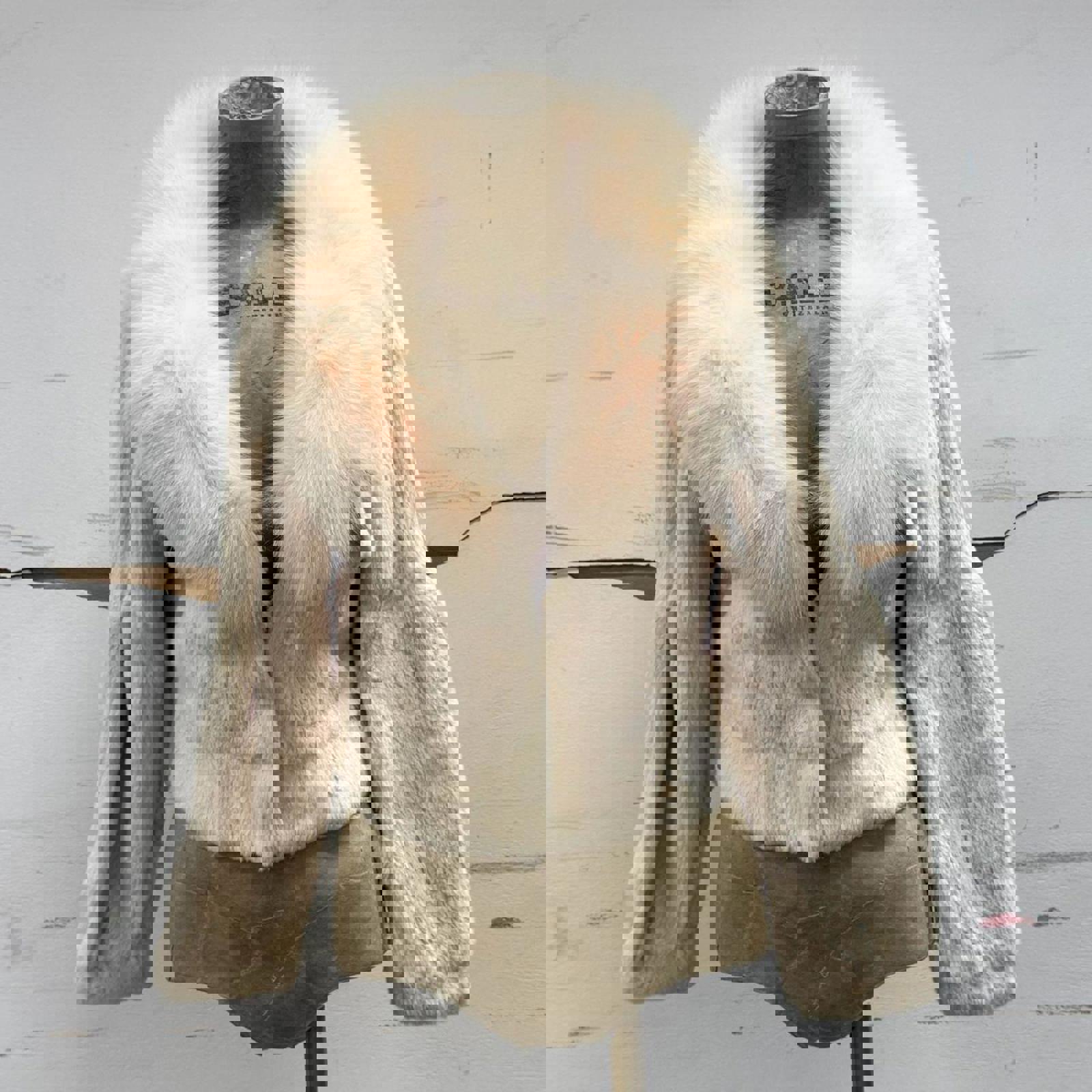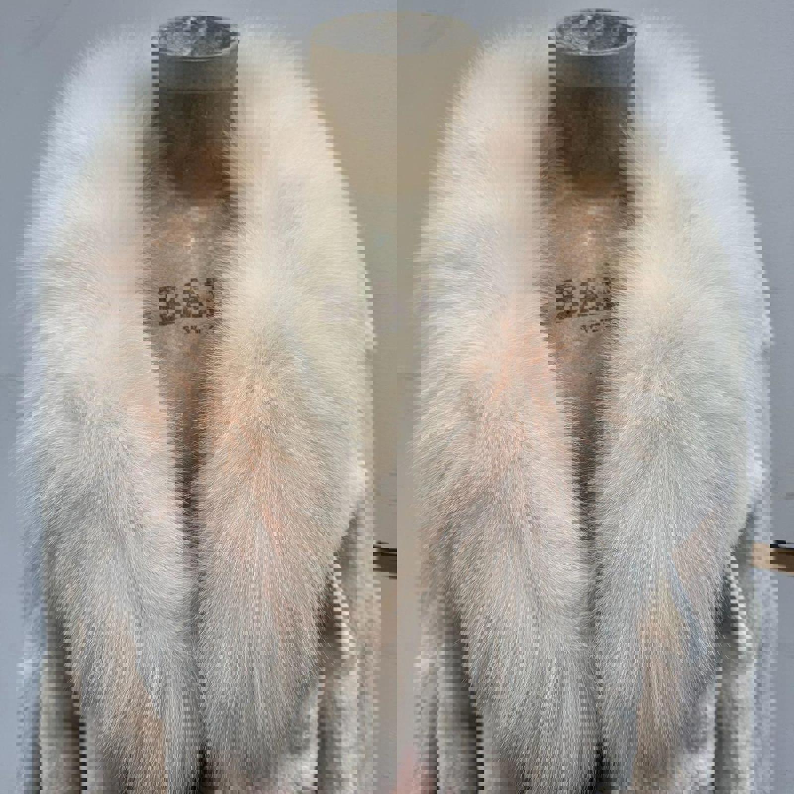 Material: 100% Genuine Rabbit Fur body with a 100% Genuine Fox Fur collar.