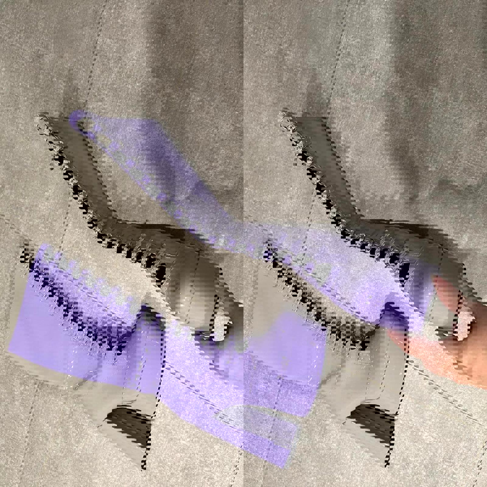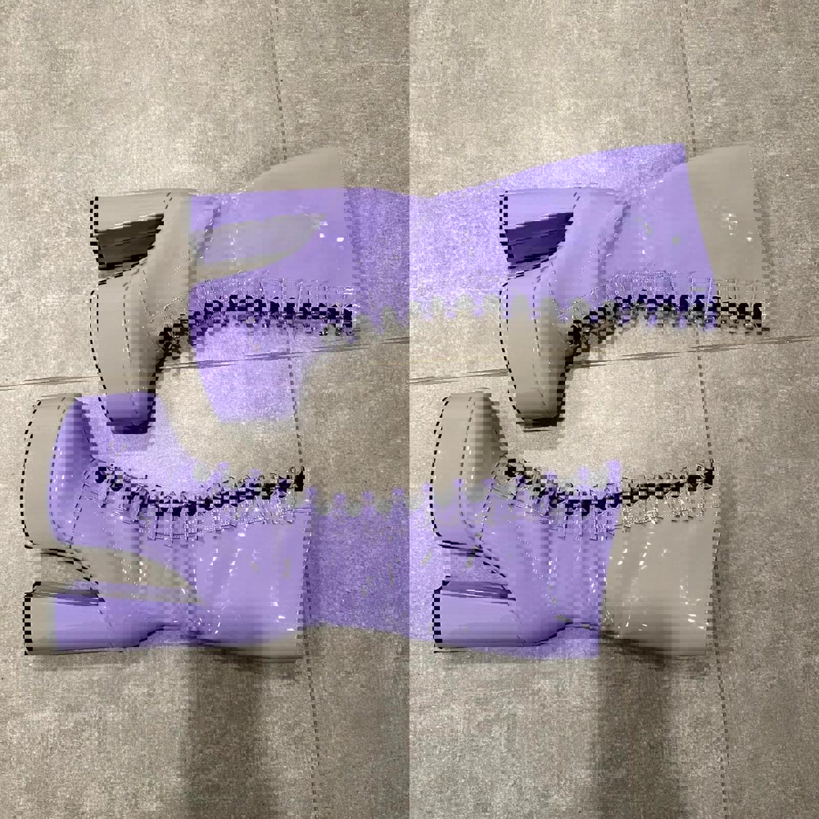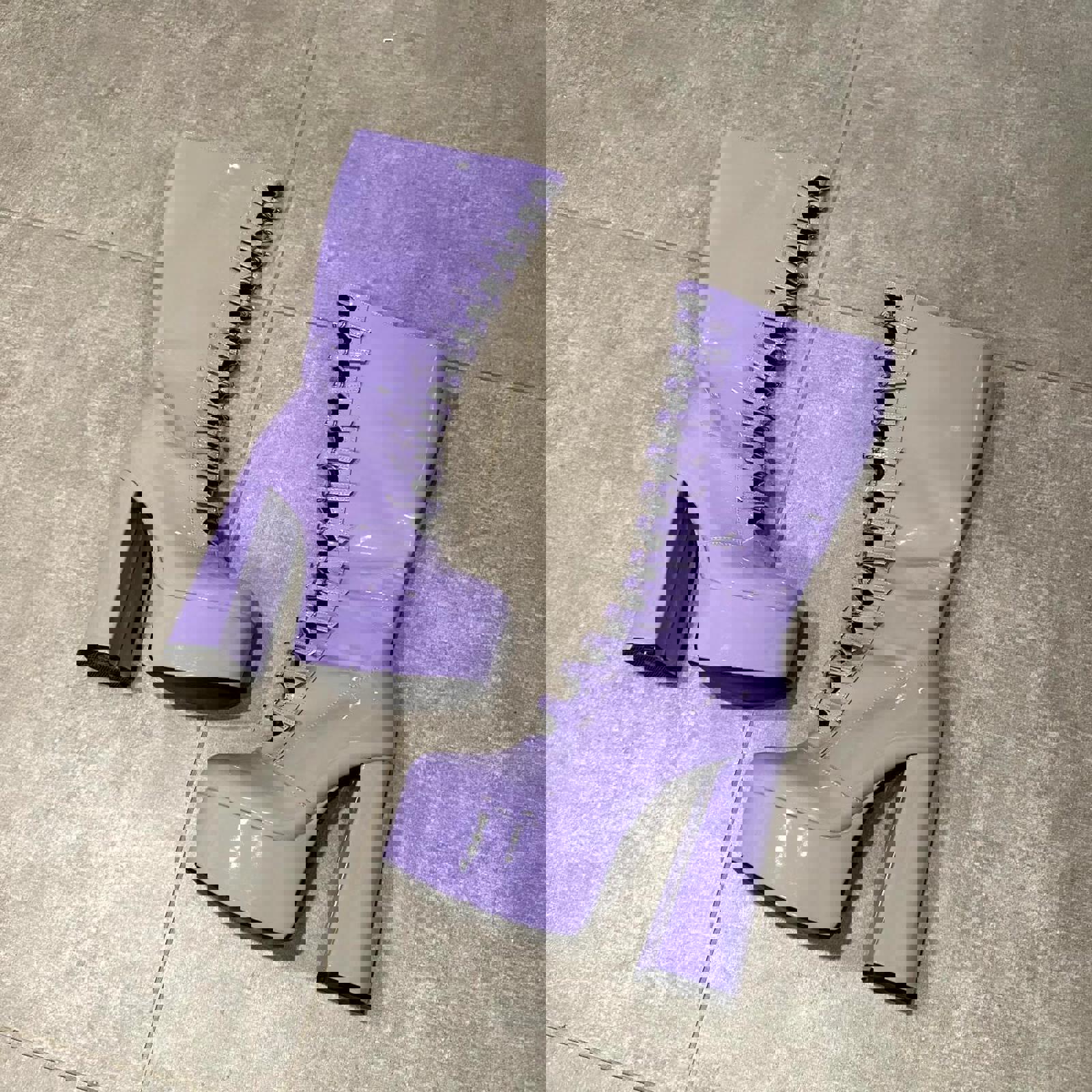 pastel purple patent leather platform boots