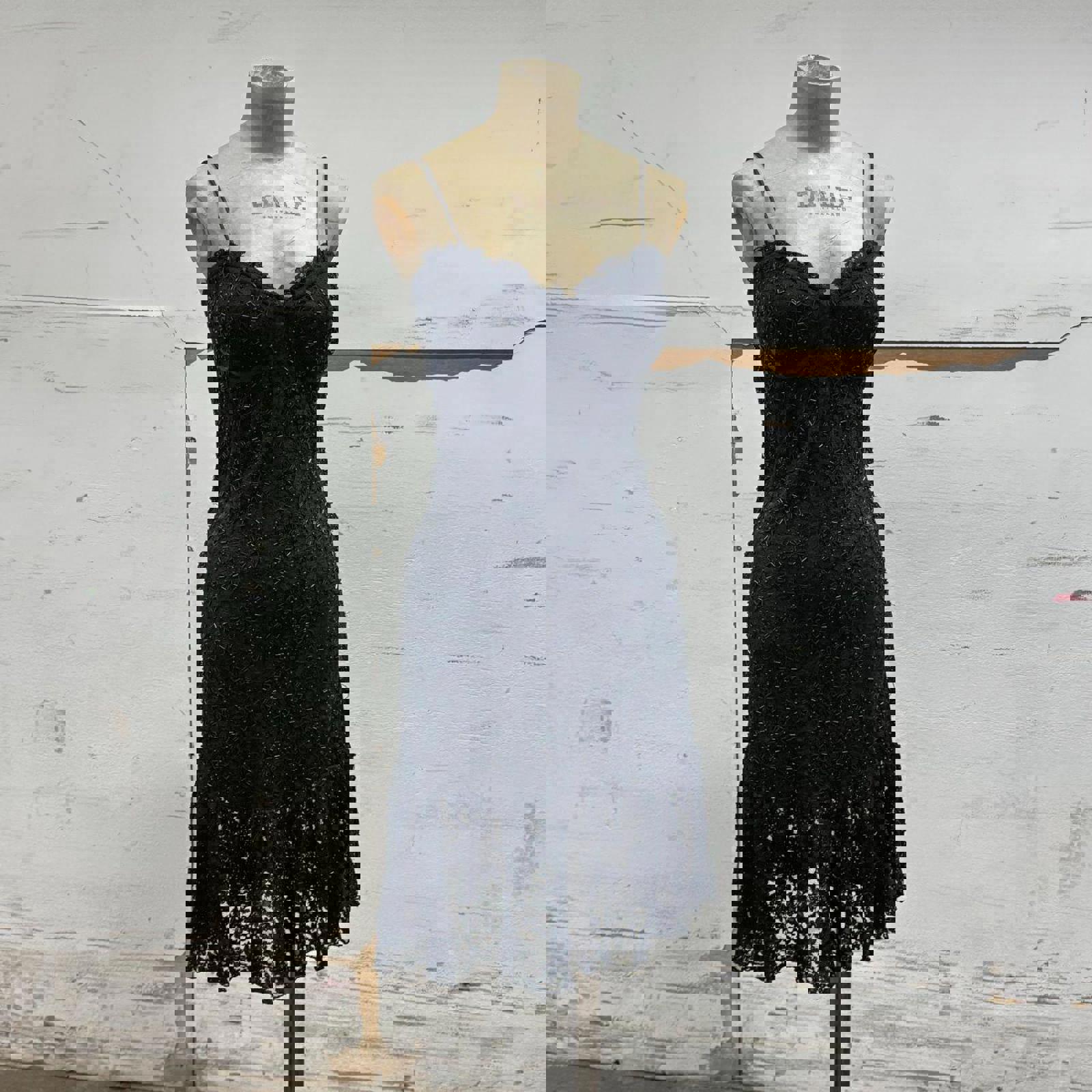 Y2k Vintage Di Francesco Black Beaded Lace Midi Dress